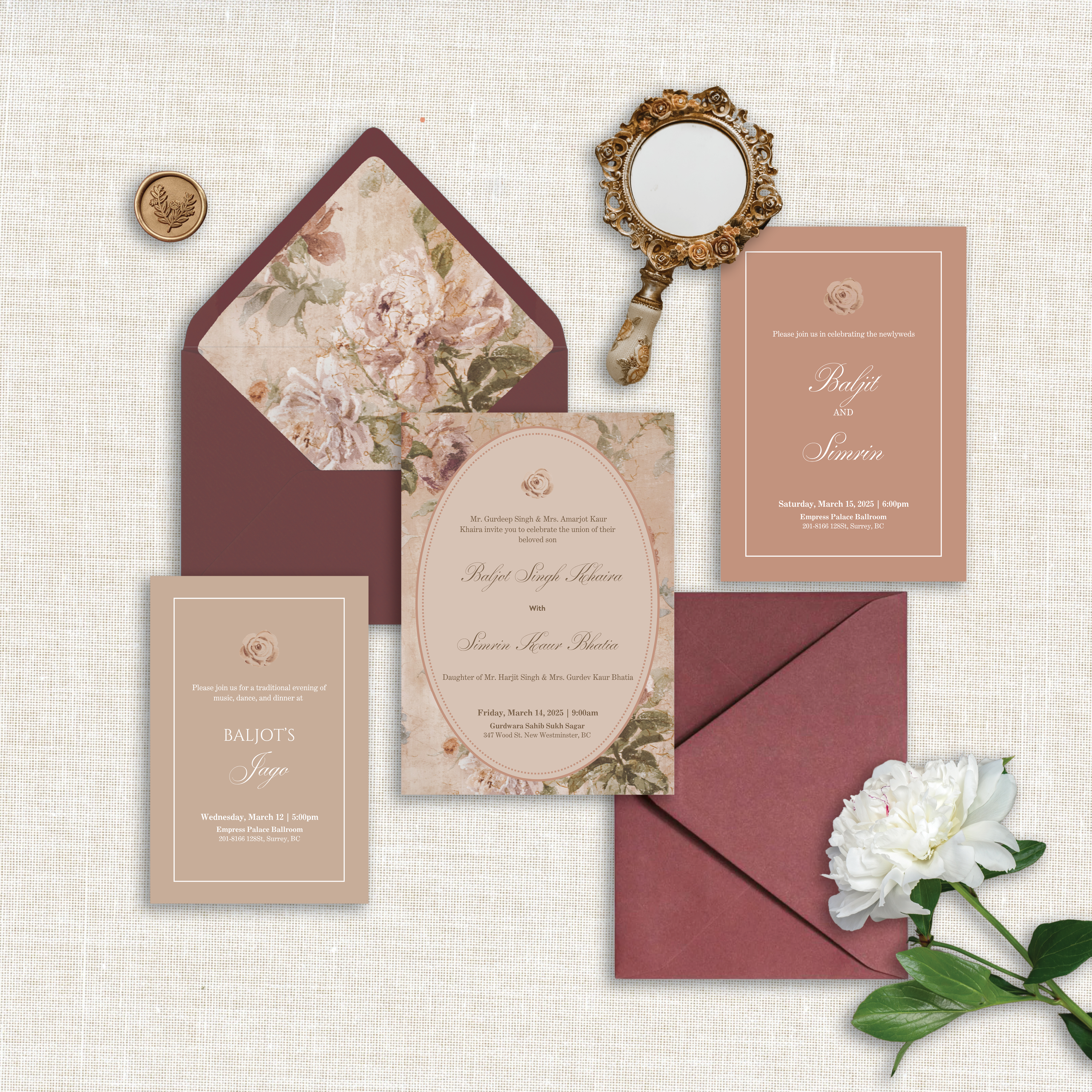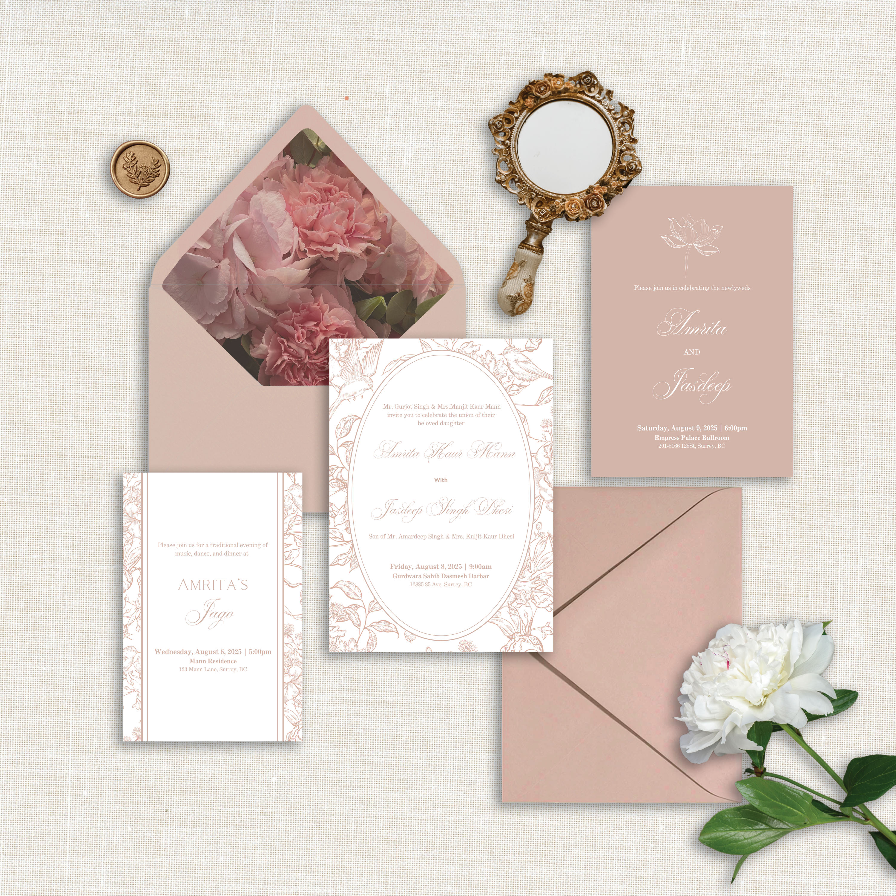 Starting from our thoughtfully designed foundations, our semi-custom invitation suites are refined with your details to perfectly suit your celebration.